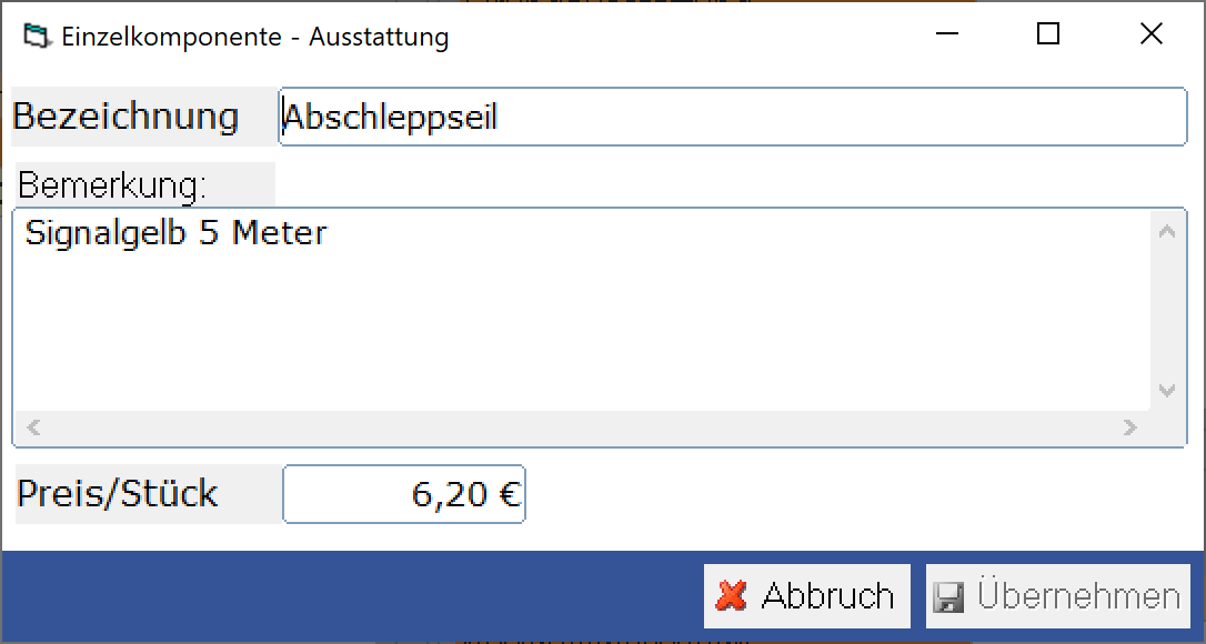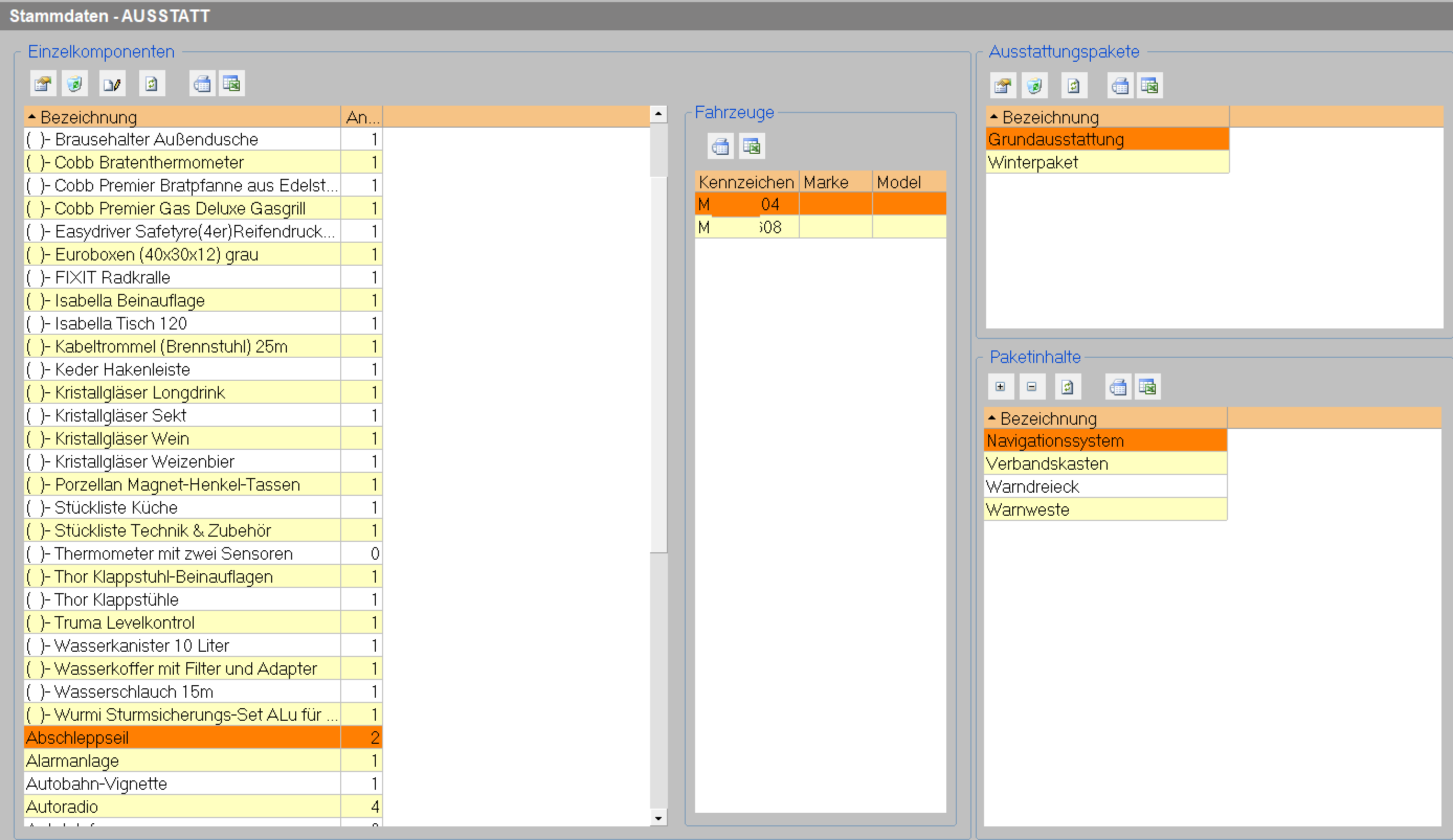 Die Fahrzeugausstattung wird Ihnen mit mehr als 20 Einzelkomponenten zur Verfügung gestellt und kann beliebig erweitert werden. Darüber hinaus besteht die Möglichkeit, beliebige Ausstattungspakete zu definieren und zu verwalten. Ausstattungspakete können aus einer oder mehreren von Ihnen festzulegenden Einzelkomponenten bestehen.