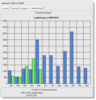 Die monatliche Laufleistung des aktuellen Jahres im Vergleich zum Vorjahr. Es besteht die Möglichkeit mit einem rechten Mausklick die Grafik in die Zwischenablage zu kopieren.