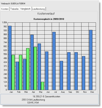 Hier werden die Kosten über 12 Monate mit den Kosten des Vorjahres verglichen. Es besteht die Möglichkeit mit einem rechten Mausklick die Grafik in die Zwischenablage zu kopieren.
