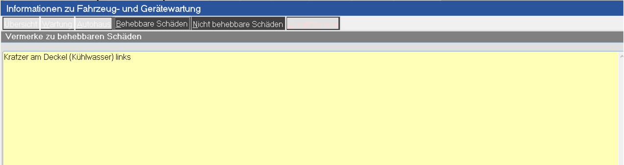 In den beiden Registern [Behebbare Schäden] und [Nicht behebbare Schäden] können Wartungshinweise zu jeweiligen Schäden gemacht werden: